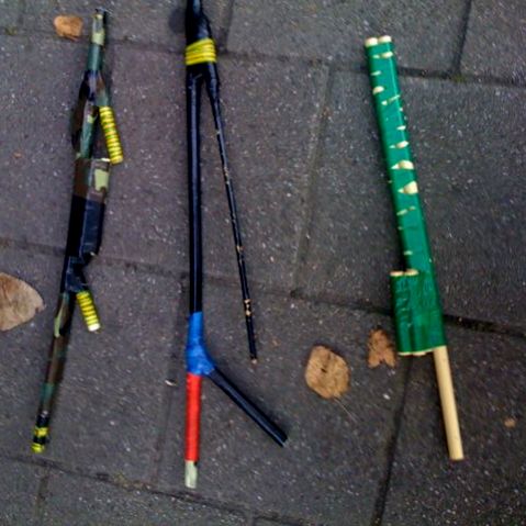 Met PVC buizen, zaagjes, gekleurd tape en stukjes hout!